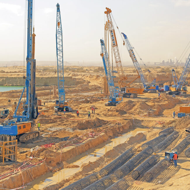 Diaphragm walls are cast-in-situ reinforced concrete walls, built from ground level, formed to retain the sides of deep excavation. Diaphragm walls are constructed using state of the art cutters usually suspended from heavy-duty cranes. Our in-house geotechnical design engineers determine the thickness, depth of the wall, level of struts or anchors (if required) as well as the amount of reinforcement the wall needs for stability of the designed excavation.