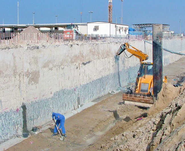 A quay wall is an earth retaining structure which is used to dock floating vessels and transfer goods.